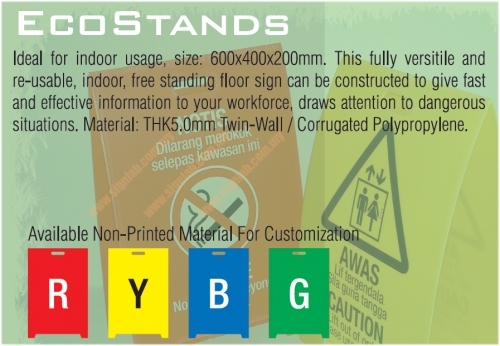 Ideal for indoor usage, size: 600x400x200mm. This fully versitile and re-usable, indoor, free standing floor design can be constructed to give fast and effective information to your workforce, draws attention to dangerous situations.
